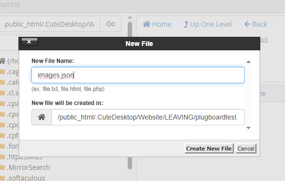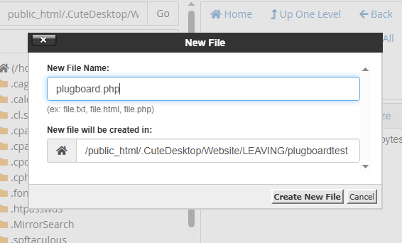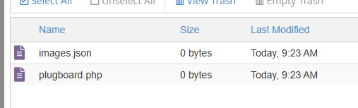 Make a folder for your plugboard on your webhost directory (the place where you store your site files, etc). You can call the folder whatever you want. Mine is called "plugboardtest" for this tutorial. The folder will start with nothing in it.